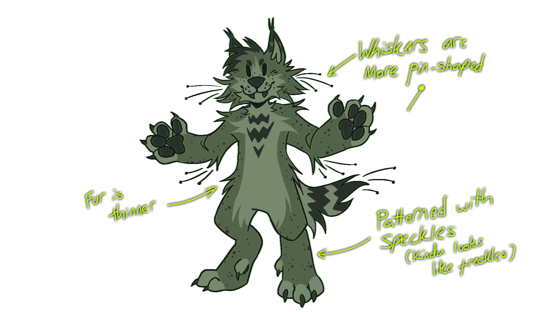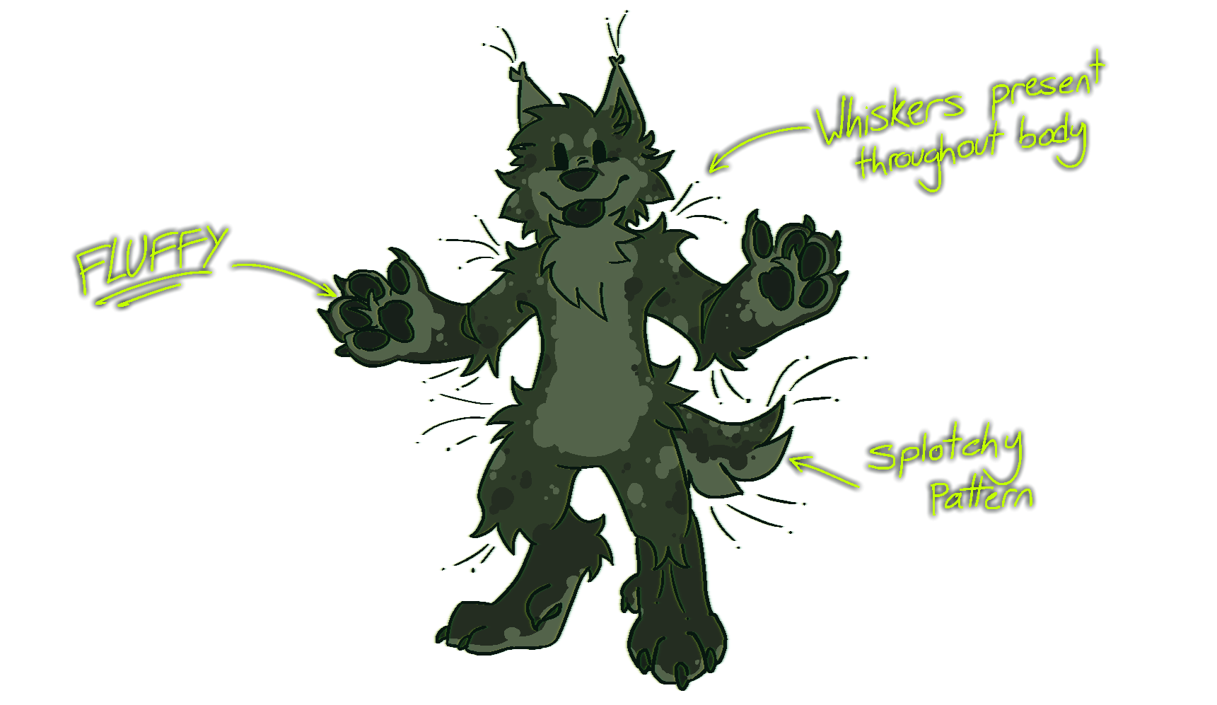 lots of whiskers present throughout the body, more so in the fluffier spots such as