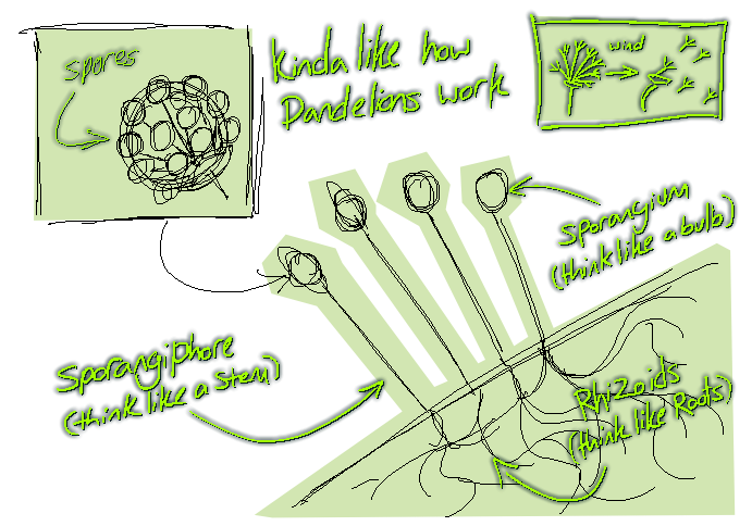 be identified by their longer, slightly thicker stems with a thicker sporagium at the end,